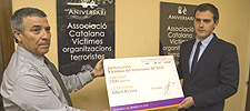 El presidente de Ciudadanos, Albert Rivera, ha donado este jueves a la Asociación Catalana de Víctimas de Organizaciones Terroristas (ACVOT) los 2.500 euros recibidos como indemnización por las amenazas recibidas en 2007 por parte de dos militantes de las juventudes de ERC.