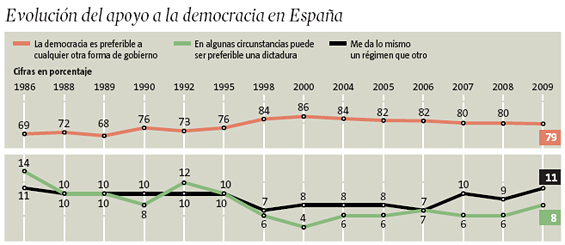 Evolución de apoyo al sistema democrático en España (cuadro: 'La Vanguardia').
