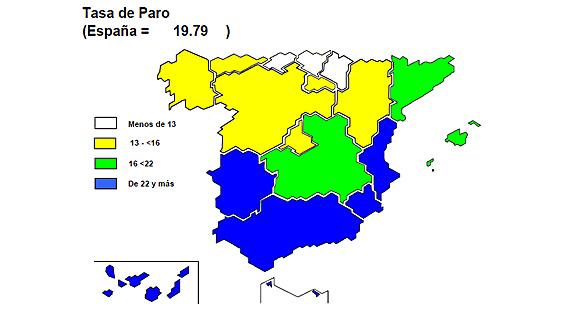 Mapa con los porcentajes de paro por CCAA (fuente: INE).
