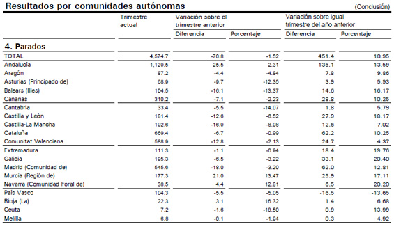 Datos del paro por CCAA y sus variaciones (fuente: INE).