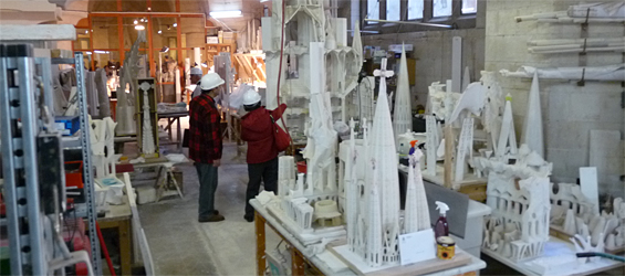 Hay pocas empresas que faciliten las piedras de la construcción de la Sagrada Familia. Una de estas es la empresa gerundense Casellas Xirgu, desde hace 12 años. Ayer, el Diari de Girona explicaba el proceso de elaboración de la piedra de ‘alta calidad’. Originariamente las piedras eran extraídas de una cantera de Montjuïc. (Foto: LVdB, taller de la Sagrada Familia).