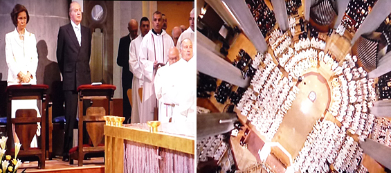 Espectaculares imágenes del interior del templo, que muestra TV3 para todo el mundo, y que LA VOZ DE BARCELONA mostró ayer. Los Reyes siguen atentamente la ceremonia.