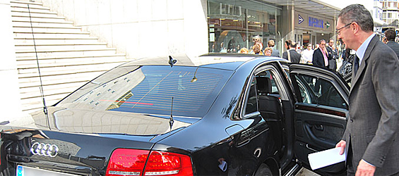 Alberto Ruiz Gallardón, alcalde de Madrid, entra en su coche oficial.