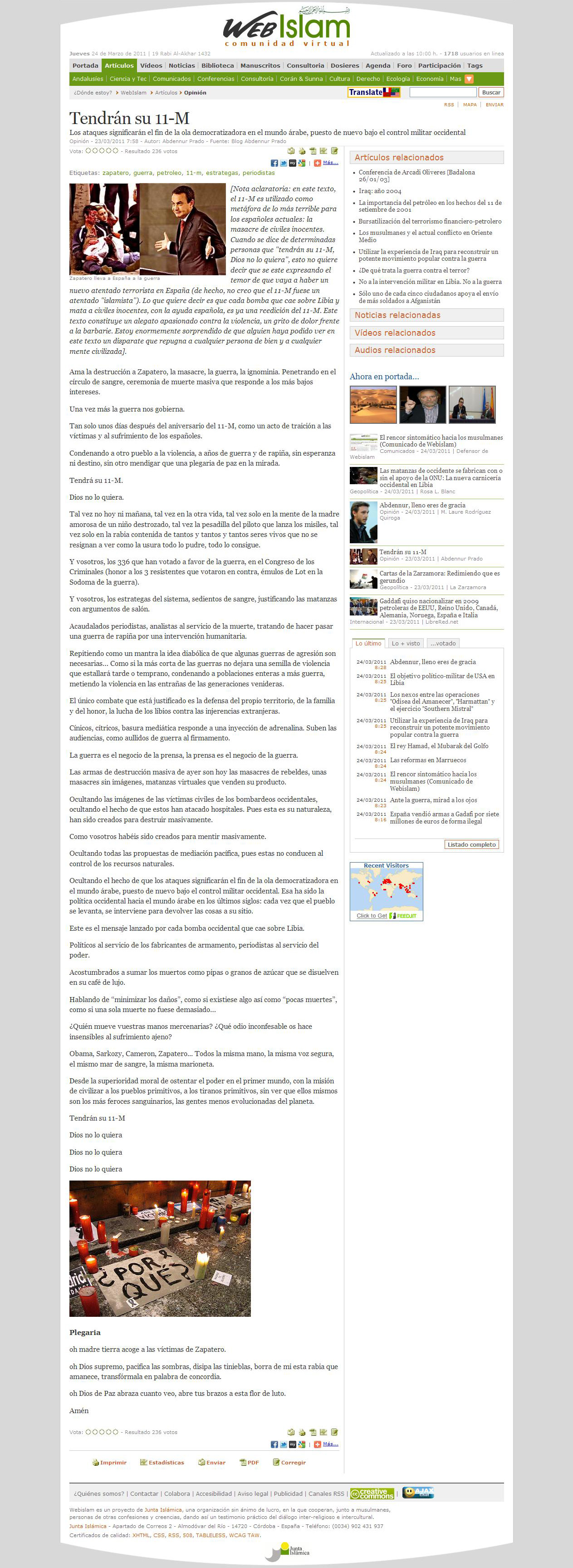 [ACTUALIZADO 10:09] Los administradores de webislam.com han retirado el texto y han emitido un comunicado pidiendo ‘disculpas a todas y cada una de las personas que hayan podido sentirse ofendidas tras evocar unos acontecimientos tan terribles y, particularmente, desgarradores para las víctimas y sus familias y, también, todos nosotros, los españoles’.