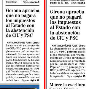 El rizo del absurdo se lo lleva el diario El Mundo. No es nuevo pero hacía meses que Gerona no estaba en su portada. ¿Cómo citar a la capital catalana? Fácil, en Cataluña en su opción en catalán (Girona), y en el resto de España, en español (Gerona). Es totalmente ilógico, desde el punto de vista lingüístico o administrativo, si me apuran. Pero, eso sí, es políticamente correcto. Parece poco discutible que si se escribe en español (o en catalán, o en cualquier idioma), los topónimos se deben citar en su forma adaptada (que en ocasiones coincide con la oficial, pero no siempre). Es decir, en español es Lérida y no Lleida; y en catalán es Osca y no Huesca. Sin embargo, por un cierto complejo la mayoría de los medios de comunicación en España han adaptado algunos topónimos a los nombres de las lenguas autonómicas (aunque no siempre). Desconozco qué dice el libro de estilo de El Mundo pero su caso es insólito. ¡Escribir el topónimo de una ciudad en función del lector y no según la lengua del diario o según lo aprobado por el ayuntamiento!