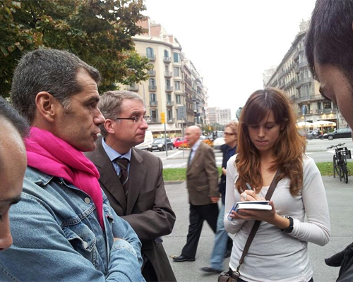 El congresista de UPyD en el centro de Barcelona (foto: Twiiter Beatriz Becerra).