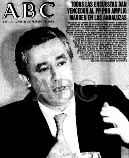 Portada de 'Abc' del 26 de febrero de 1996, una semana antes de la cita electoral autonómica de aquel año.