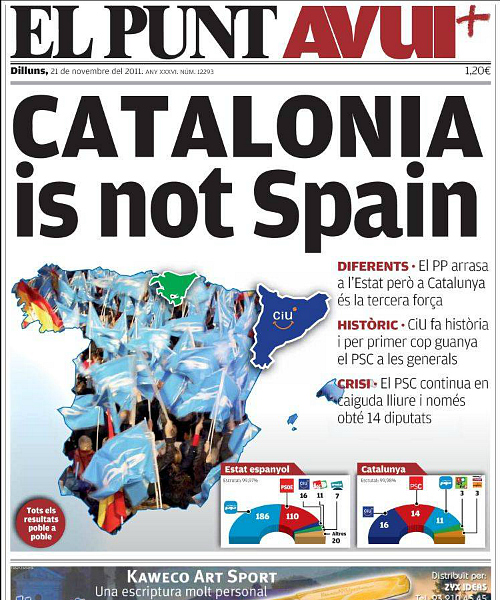 Portada de 'El Punt Avui' el 21 de noviembre de 2011, día después de las elecciones generales.