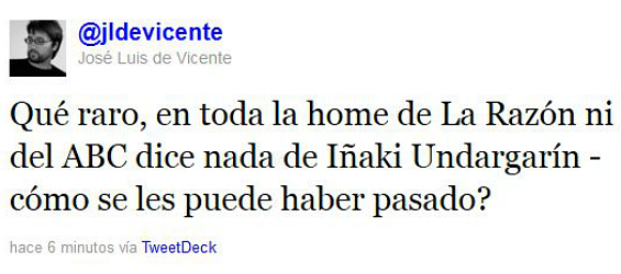 Así es, ni la web de Abc ni la de La Razón llevan en portada la acusación de Anticorrupción contra Iñaki Urdangarín. El asunto es muy serio. Tanto, que La Vanguardia ignoró (se olvidó, dirán) por completo el tema en su edición de ayer martes en papel, pese a que sí lo publicó en la web. Y eso que solo estaban registrando la sede de la empresa en Barcelona que había presidido el yerno de los Reyes. Estaba cantado que su portada en internet de este miércoles (ahora mismo) tampoco iba a informar de la acusación de Anticorrupción. Unos informan y otros… hacen lo que deben.