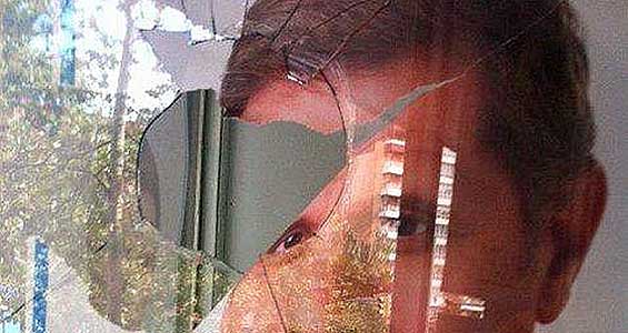 Aspecto del cristal de la sede del PP en el distrito barcelonés de Nou Barris tras recibir un ataque este fin de semana (foto: 'Abc').