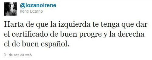 Tuit de Irene Lozano, número 4 de UPyD por Madrid para el 20N.