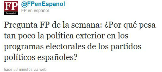 Es innecesario que los políticos actúen como si fueran periodistas. A un político no se le exige (en público) una primicia que no tenga que ver con él directamente, es decir, que no sea primicia suya. Sobre un hecho: una valoración, una respuesta o una medida a tomar. Javier Solana mató a Ariel Sharon. ¿Por qué? ¿Qué necesidad tenía? No será el último. Cada día de fútbol, personajillos de la política se dedican a tuitear lo que pasa en el campo… y ven desde la televisión. Llevamos días leyendo tuits de políticos anunciando la dimisión de Papandreu en Grecia. Bien. ¿Qué soluciones plantearían para los griegos? De eso no tenemos pero, eso sí, seremos los primeros en anunciar la dimisión. Es una cuestión de credibilidad.