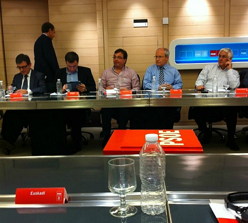 “Buscando fórmulas para dar las mejores respuestas”, escribía Patxi López a pie de esta foto, tomada durante la reunión mantenida este viernes entre los barones del partido y la cúpula de la dirección. Finalmente, en 2012 tendremos un Rubalcaba vs. Rajoy.